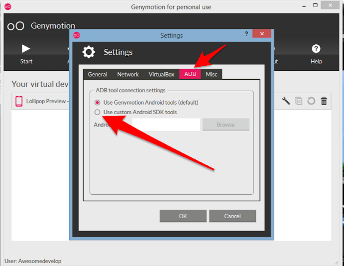 Настройка Genymotion.